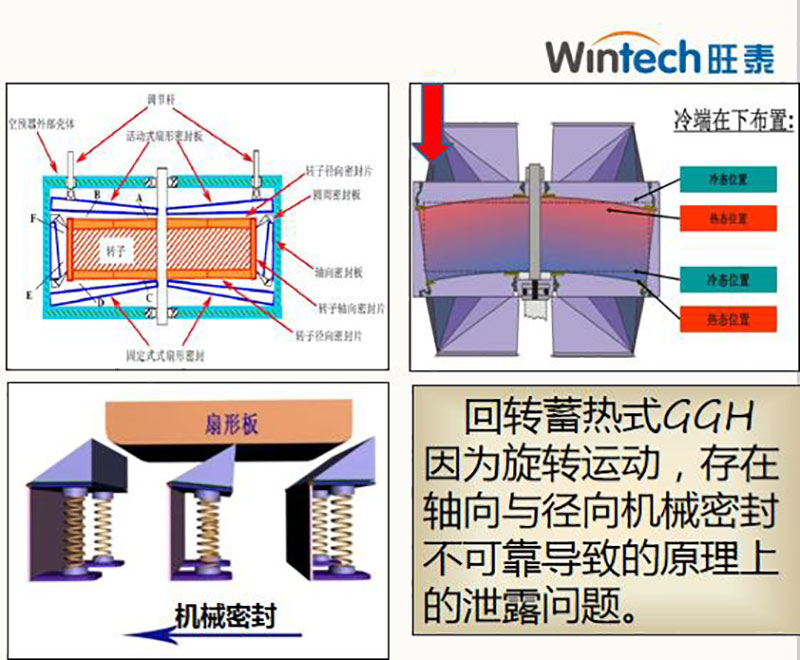 二、兩種GGH的泄露率不同:由于回轉(zhuǎn)式GGH蓄熱體是沿著圓周回轉(zhuǎn)運(yùn)動(dòng)就一定存在了徑向和軸向的機(jī)械密封問(wèn)題,所以一般存在理論上的泄露率,一般產(chǎn)品的泄露率在2%左右,而板式GGH是全焊接板式換熱器產(chǎn)品,我們之前的原理當(dāng)中也講過(guò)是零泄漏的。
