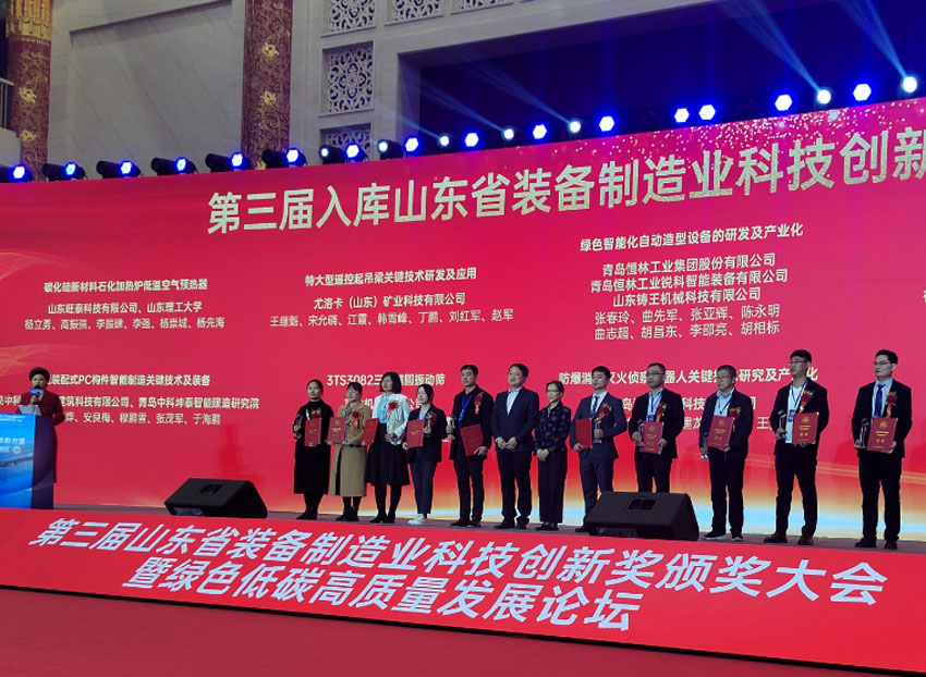 3月22日上午,第三屆“山東省裝備制造業(yè)科技創(chuàng)新獎”頒獎大會暨綠色低碳高質量發(fā)展論壇在濟南賓館舉行。大會隆重表彰獎勵科技創(chuàng)新項目,鼓勵科技自主創(chuàng)新,營造創(chuàng)新發(fā)展氛圍。