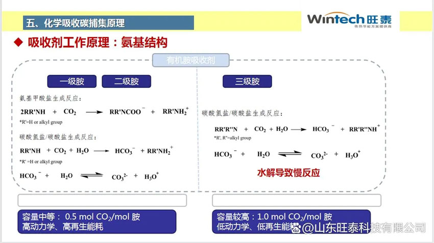化學(xué)吸附法的捕集原理主要是由多種類型的胺和二氧化碳反應(yīng)生成碳酸胺,那么這種碳酸胺在一定溫度作用下重新分解成胺和二氧化碳,利用了這樣的化學(xué)原理進行二氧化碳捕集與收集,由于胺的不同類型也分一級胺、二級胺和三級胺,它主要區(qū)分于對二氧化碳的吸收效率和吸收成本進行區(qū)分。