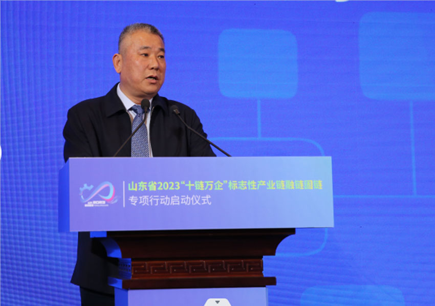 4月3日,山東省2023“十鏈萬企”標志性產業(yè)鏈融鏈固鏈專項行動在濟南啟動,山東省副省長周立偉、工業(yè)和信息化部中小企業(yè)局一級巡視員王海林等領導出席啟動儀式并作重要講話。山東佳能科技股份有限公司作為標志性產業(yè)鏈配套企業(yè)代表應邀出席并參加現(xiàn)場對接活動,我公司董事長楊立勇出席啟動儀式并上臺發(fā)言。