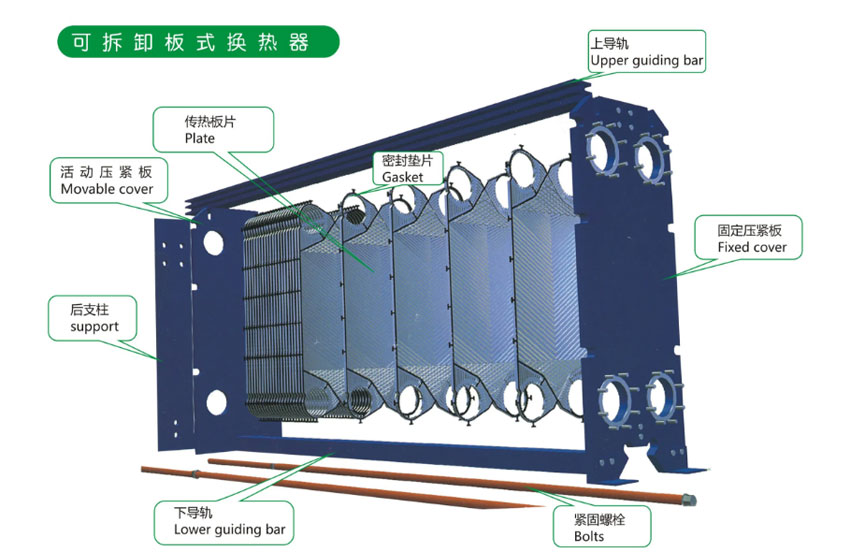 ①可拆卸板式換熱器(又叫帶密封墊片的板式換熱器)