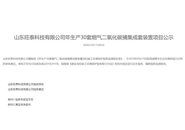 山東旺泰科技有限公司年生產(chǎn)30套煙氣二氧化碳捕集成套裝置項(xiàng)目公示...